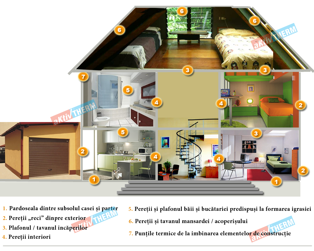 Fals. Tavan, podea și colțuri reci sunt puncte majore de pierdere termică.